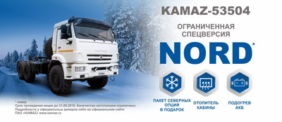 Специальная версия «NORD» представляет собой седельный тягач KAMAZ 53504 класса Евро-5 с дополнительным пакетом комфортных северных опций по цене стандартного тягача: